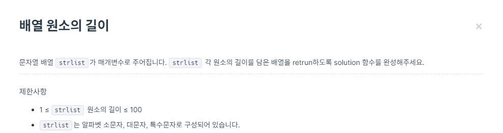 // 문자열 배열의 각 요소에 대해 map 메서드를 사용하여 길이를 구함
